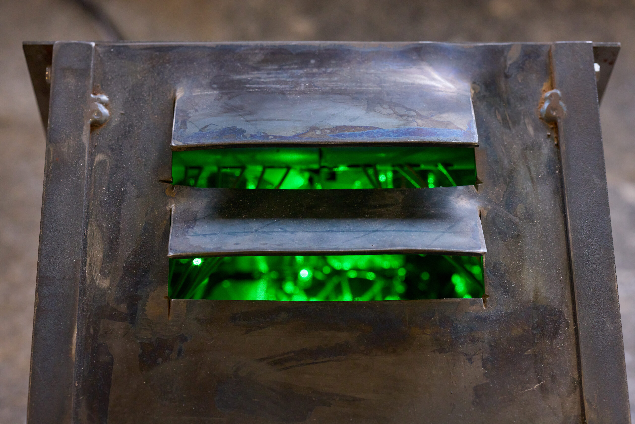 Dasper l’oscillograf as rechatta üna chaista da metal. Our d’üna sfessa s’impizza e’s stüda üna glüm verda. «Quella chaista cuntegna üna harddisk e simbolisescha cha l’internet es üna blackbox chi registrescha tuot nossas activitats online», declera René Fritschi. Che chi capita culs messagis, commentaris, fotografias e videos illa blackbox, da quai nu vaina ingüna controlla, i po gnir copchà, multiplichà, miss in oter context – scha nus dain il permiss o na.