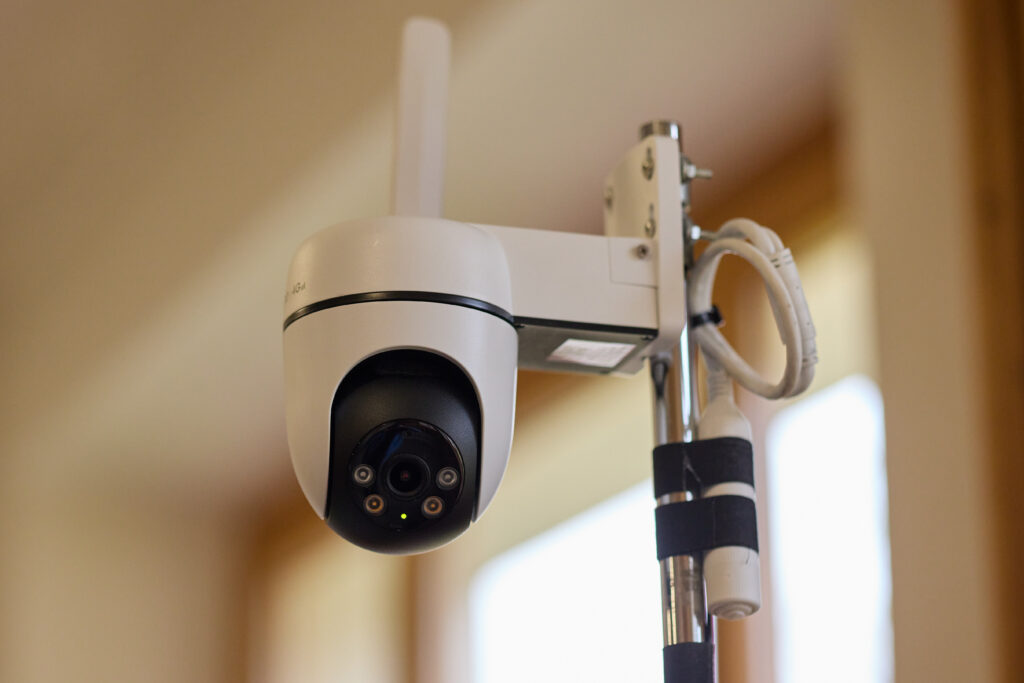 Montà sün üna stanga da metal sper il ADD-Man es üna camera da survaglianza chi segua ils movimaints da quellas e quels chi contaimplan l’installaziun. «Quella camera simbolisescha cha nus gnin suvent survagliats culs mezs da la digitalisaziun», disch l’artist. Schi’s voul o na: I’l tren o bus, sün staziuns plü grondas, pro üna o tschella porta d’entrada ed intant dafatta i’l god registreschan cameras da survaglianza o traplas fotograficas che chi capita i’l focus da lur opticas – ed arcuneschan las registraziuns forsa per eivnas, mais o dafatta amo plü lönch. L’installaziun simbolisescha quels mezs electronics, ma ella svess nu registrescha o arcunescha ne purtrets, ne tuns.