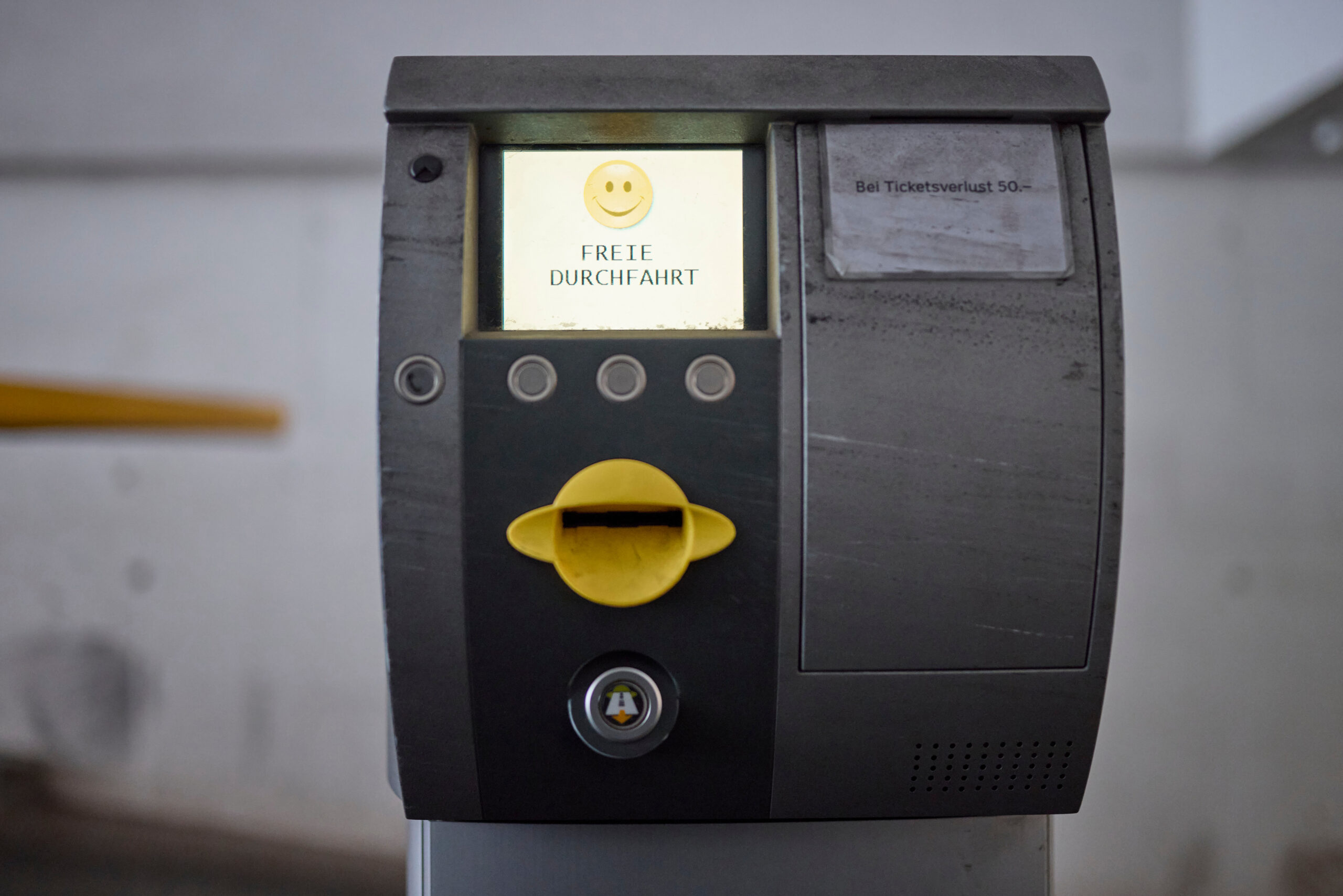 La barriera la plü flotta da l’Engiadina, ella as rechatta pro l’entrada da la garascha suotterrana dal Coop a Scuol. Chi chi va cul charröttel a far sias cumischiuns pro’l detaglist cuntschaint, ha garanti fingià fat cugnuschentscha da sia tenuta amiaivla: Cun «Freie Durchfahrt» ed ün smiley chi ria amiaivelmaing sur tuot la fatscha bivgnainta l’apparat sper la barriera a l’entrada da la garascha la cliantella.