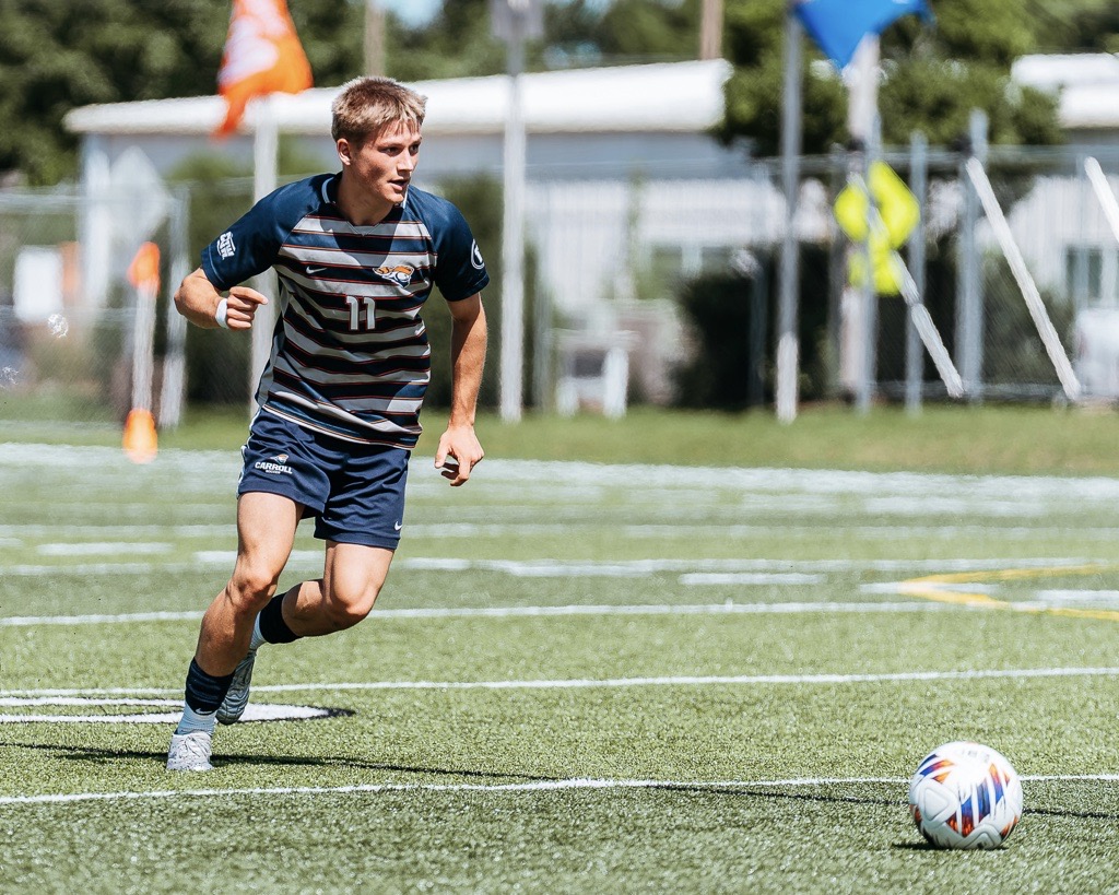 Culla squadra da ballapei dall’Carroll University da Waukesha absolva el il campiunadi dallas scolas aultas dalla NCAA (National Collegiate Athletic Association). En ligias regiunalas emprovan las equipas dallas universitads da sequalificar pils finals naziunals. «Igl atun essan nus curdai ora els quart-finals dils playoffs, aschia ch’il campiunadi ei staus a fin ils 6 da november 2025», di Remy Manetsch. Ella secunda davosa minuta dalla prolungaziun ha la squadra adversaria sittau il gol decisiv en disfavur dall’equipa dil Sursilvan. Remy Manetsch absolva il campiunadi sco defensur dretg: «En sesez ei quei buca mia posiziun. Tier Schluein Glion dun jeu sco attaccader.» Il motiv ch’el ei vegnius plazzaus en quella posiziun ei declaraus spert: «En mia posiziun preferida dat ei entgins fetg buns giugadurs alla scola, aschia ch’jeu sun vegnius plazzaus ella defensiun.»