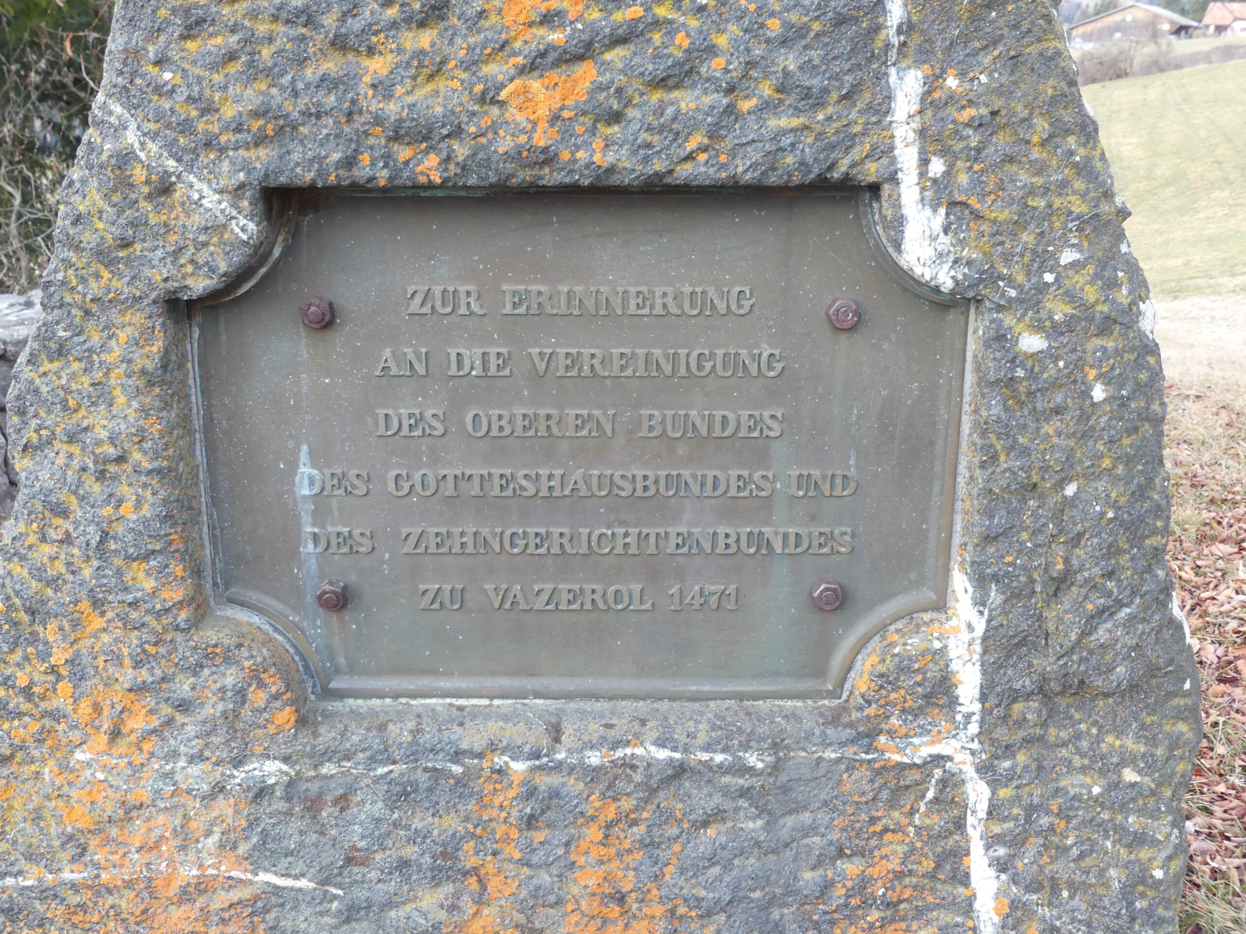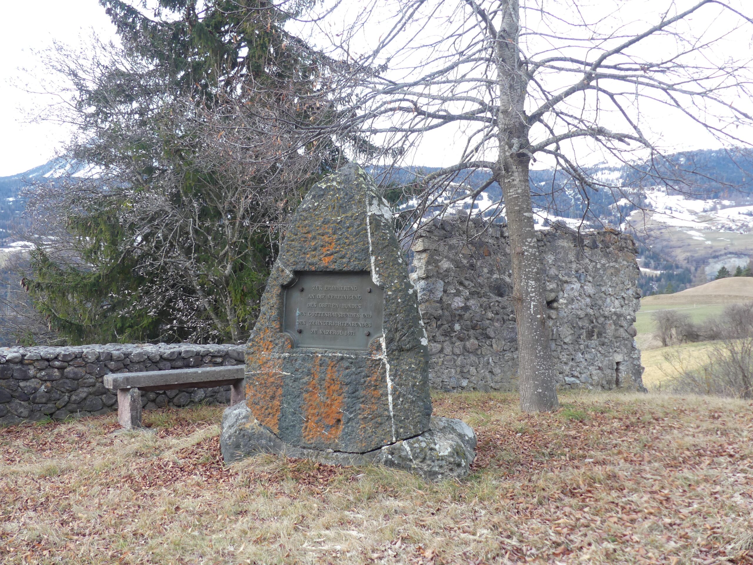 Igl onn 1471 è igl Grischun sa constituia scu stadi liber a Vazerouls. Chegl pretenda en obelisc sen la Plazza dalla Regenza a Coira ed en crap commemorativ a Vazerouls. Dantant tgi novas tavlas d’infurmaziun rectifitgeschan siva digl november 2025 chel sbagl istoric ainten la capitala grischuna, spetga igl Rütli grischun a Vazerouls venavant sen la corrigenda. E chegl resta prubablamaintg uscheia, scu chegl tgi igl archivar cantunal Reto Weiss ò detg anvers la FMR.