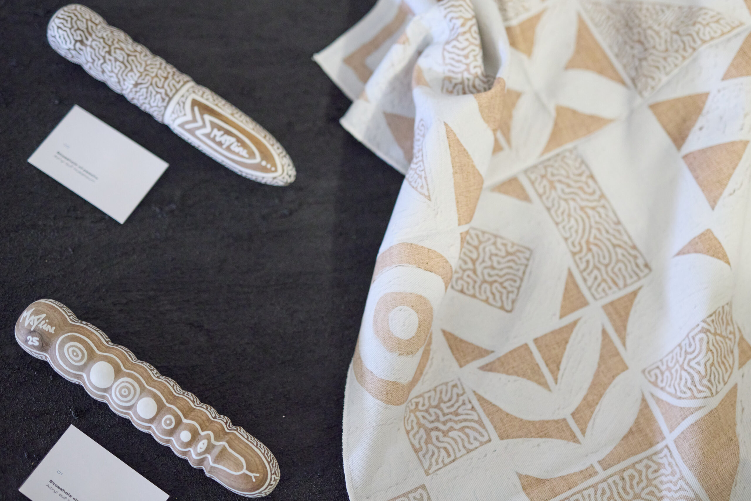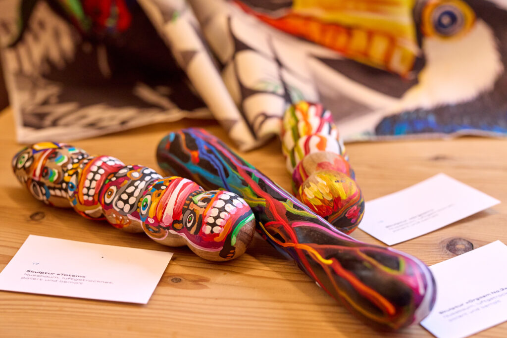 Expostas sun ouvras da las artistas Madlaina Vital e Magdalena Olkówna da Sent e’ls artists Romanesco One e Oibel 1 da Turich: Sün dildos chi nun han accumpli ils criteris da qualità per ir in vendita e classicamaing sün taila. «Vairamaing laivna il prüm be crear nouvs muosters pels fazöls da pulir cha nus tramettain cun nos prodots», quinta Bastian Sarott. «Our da quai s’ha sviluppada l’idea per üna collavuraziun cun artistas ed artists e lura per quista exposiziun.»