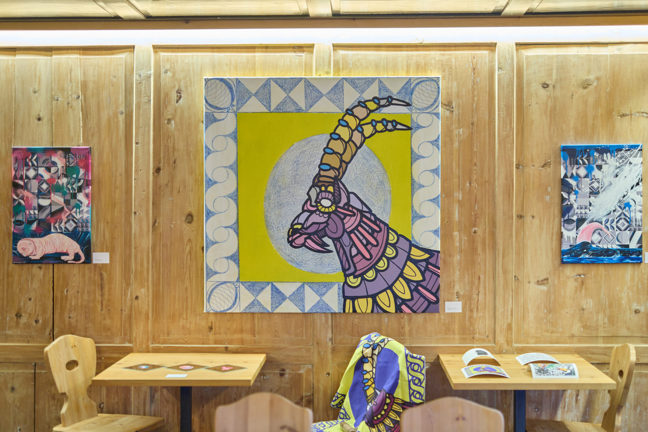 Illa Pensiunina sün Plaz a Sent han Bastian e Nina Sarott, ils mainagestiuns, perquai invidà la fin d’eivna passada ad üna vernissascha cun purtrets e sculpturas creadas dad artistas ed artists per incumbenza da la «Manufucktura». «Il böt es da chattar üna via per gnir in contact cul cumün e la regiun», disch Bastian Sarott chi’d es svess creschü sü a Sent, «da rumper il glatsch e s-chaffir acceptanza.»
