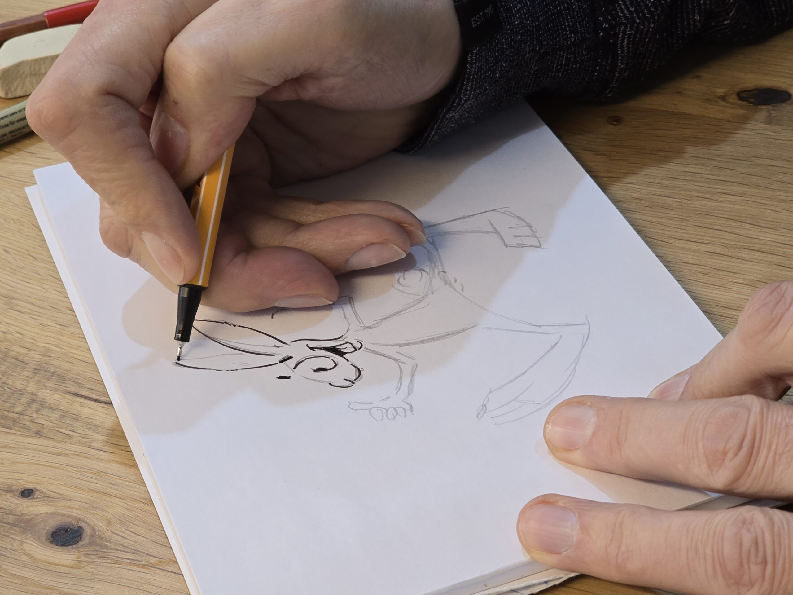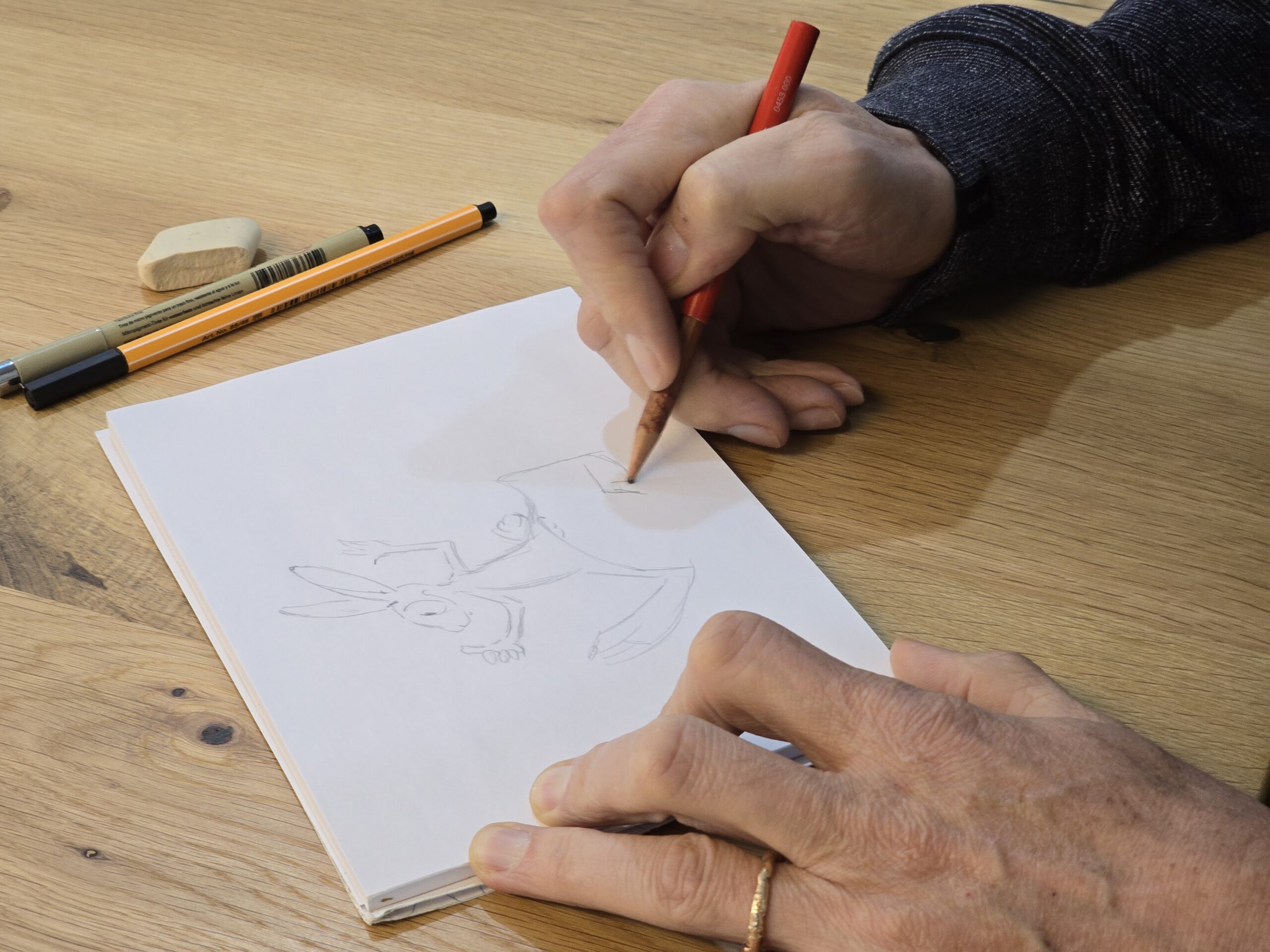 Mintga mastergner, mintga professiun, ha in utensil tipic: Il cuschinunz la palutta, la magistra la tabla, l’electricist il tirastruvas, la hoteliera las clavs, il lainari ina trav. L’utensil tipic dal caricaturist è il rispli. «Latiers anc la gumma ed in fieuter nair», agiunta Rolf Giger. Dacurt ha l’um da 58 onns cun fermas ragischs a Cuira avert en la Obere Gasse 12 sia emprima exposiziun – malgrà ch’el dissegna dapi sia uffanza. Oz sa vesa el en emprima lingia sco cartoonist e betg sco caricaturist. Rolf Giger è naschì cun quest dun e maun expressiv da dissegnar. Rispli e fieuter èn ses utensils da s’exprimer, commentar e render attent.